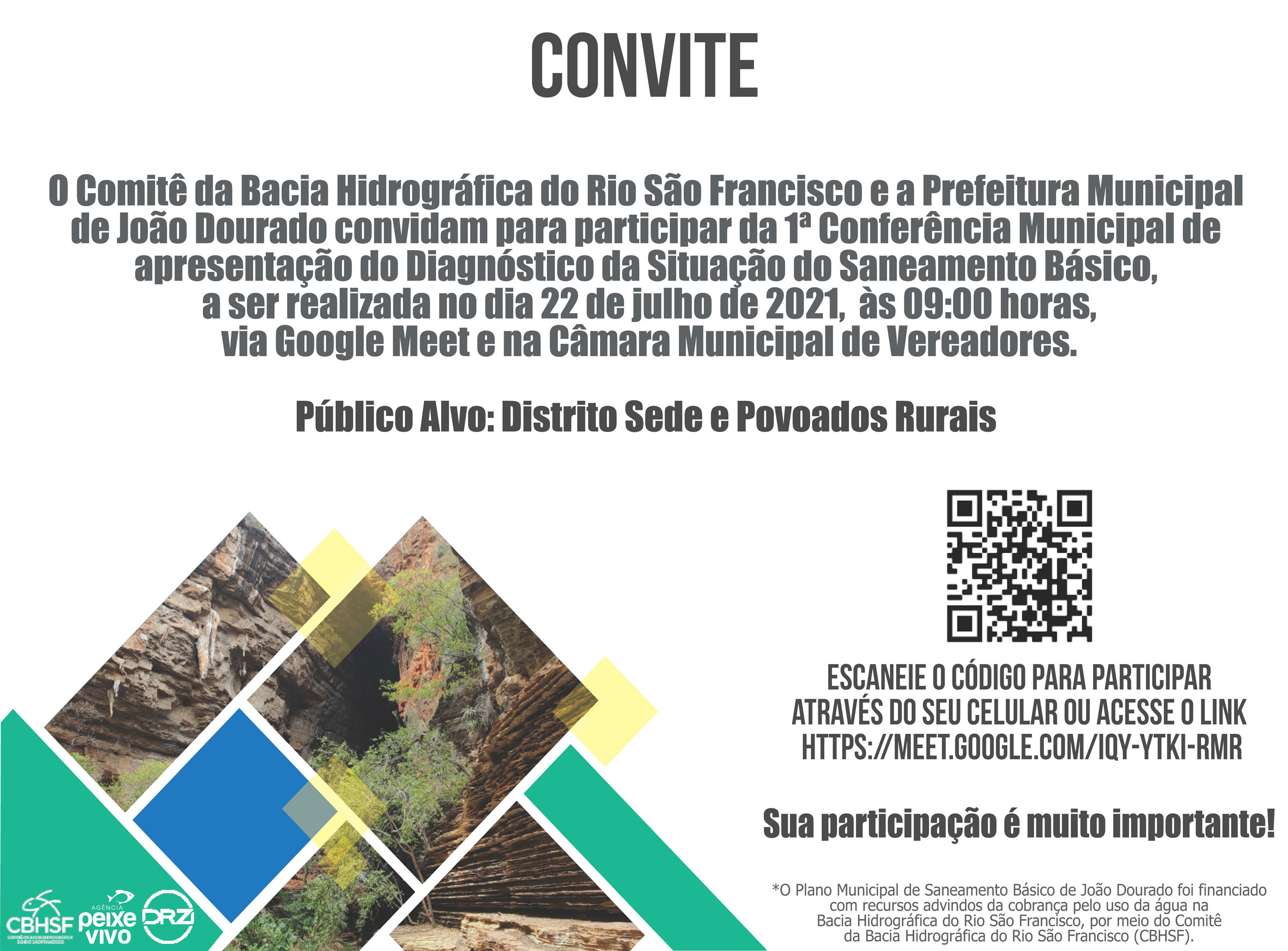 Entre os dias 22 e 29 de julho, os municípios de João Dourado, Sítio do Mato, Campo Alegre de Lourdes e Pilão Arcado, na Bahia, realizarão a 1ª Conferência Municipal para elaboração do Plano Municipal de Saneamento Básico (PMSB), em formato online.