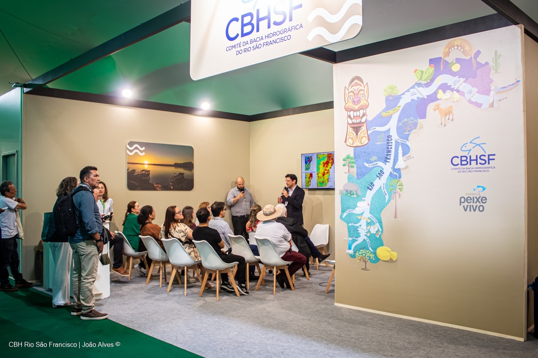 O estande do CBHSF funcionou durante os 10 dias de evento na Green Zone, e possibilitou diálogos importantes com entidades nacionais e internacionais, além de abrir portas com bancos nacionais, Governo Federal e entidades diversas com a Associação de Produtores de Crédito de Carbono e o Fórum Brasileiro de Mudanças do Clima com a parceria firmada do Mutirão pelo São Francisco.