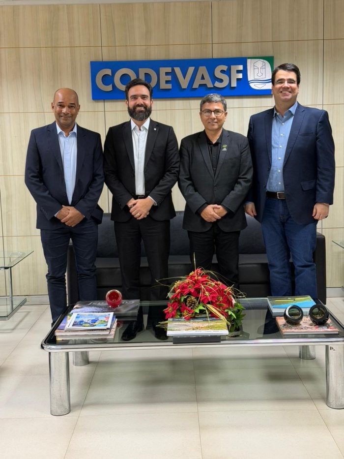 O presidente do Comitê da Bacia Hidrográfica do Rio São Francisco (CBHSF), Cláudio Ademar, reuniu-se na última quinta-feira (04), em Brasília, com o diretor-presidente da Companhia de Desenvolvimento dos Vales do São Francisco e do Parnaíba (Codevasf), Lucas Felipe de Oliveira, e com o diretor da Área de Revitalização e Desenvolvimento Territorial, José Vivaldo Souza de Mendonça Filho. A agenda consolidou a retomada do diálogo estratégico com as instâncias federais, visando alinhar o planejamento de ações de revitalização e a gestão de conflitos na bacia.