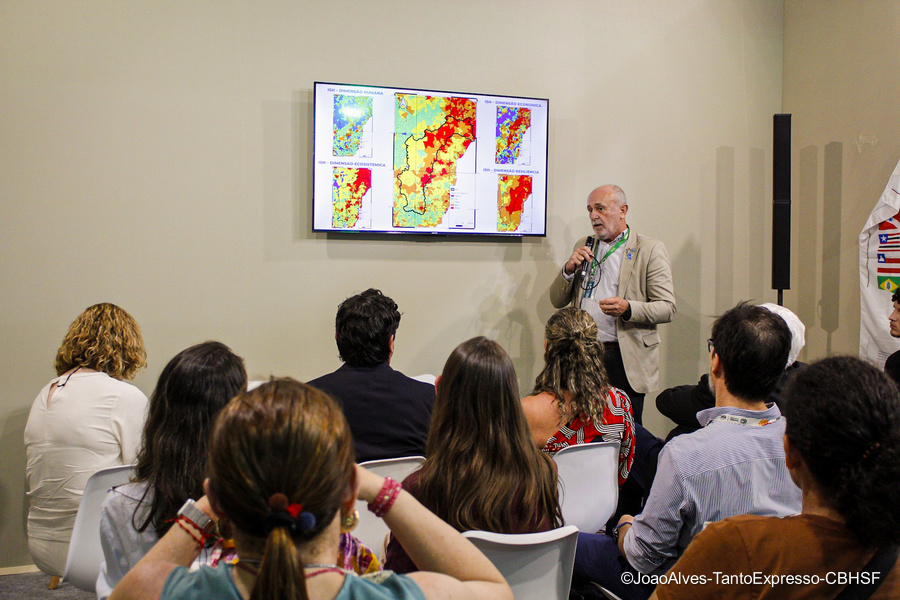 O espaço do CBHSF conta com uma programação diversificada, incluindo palestras e rodas de conversa visando integrar a pauta da Bacia com o debate global sobre o clima. Um dos momentos centrais do primeiro dia foi a palestra ministrada pela Agência Nacional de Águas e Saneamento Básico (ANA) sobre a “Adaptação à mudança do clima no Plano da Bacia do São Francisco: o uso do Water Resilience Tracker”.