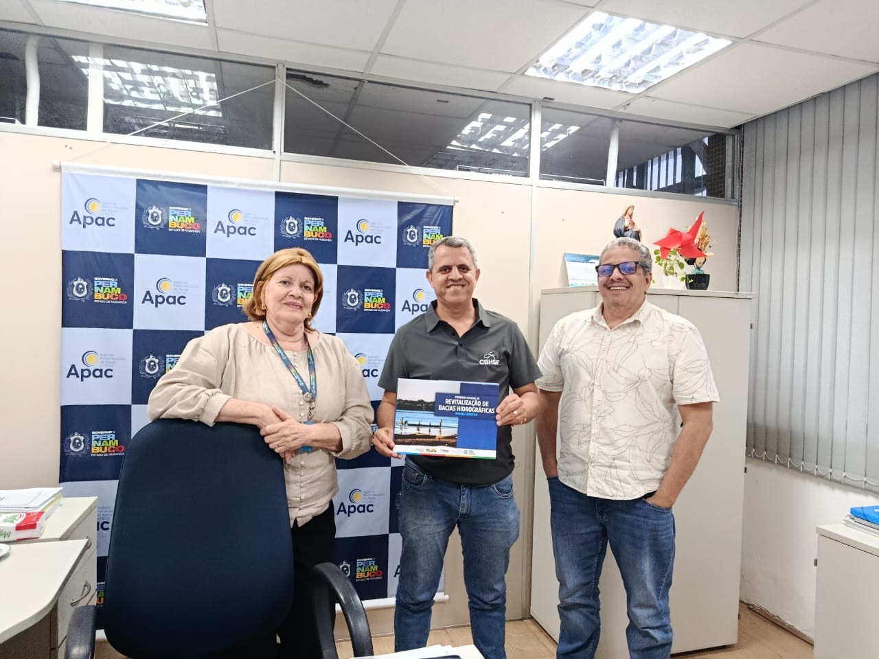 Na segunda-feira (13), Elias Silva esteve reunido na sede da Agência Pernambucana de Águas e Clima (APAC) com Fernando Acioli, Gerente de Revitalização de Bacias Hidrográficas e Lorenzza Leite, Diretora de Gestão de Recursos Hídricos. Elias Silva destacou a pauta do Pajeú. “Na APAC entre outras coisas, foi falado das ações de revitalização que vão acontecer na bacia do Pajeú, especificamente na nascente, em Brejinho, onde vão ser instalados 30 sistemas de saneamento de água total, e, além disso, uma ação de reflorestamento e recompensação ambiental no trecho da nascente. Lá a gente também vai tentar fazer uma parceria com o Comitê para ampliar, uma vez que o CBHSF já executou uma ação de cercamento e ajuste de projeto de vida ambiental”